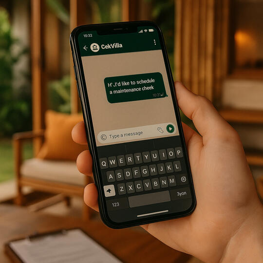 CekVilla Bali hadir untuk pemilik vila yang menginginkan ketenangan pikiran β bahkan saat mereka tidak berada di Bali. Dengan cuaca yang tidak menentu, kelembapan tropis, dan keausan sehari-hari, vila memerlukan perhatian rutin agar tetap dalam kondisi terbaik.Kami menghilangkan stres dalam pengelolaan properti melalui laporan yang jelas, deteksi kelembapan yang cerdas, dan checklist perawatan yang jujur. Baik Anda seorang investor jarak jauh maupun ekspatriat lokal, inspeksi kami membantu Anda menghindari masalah besar dan biaya mahal di kemudian hari.
